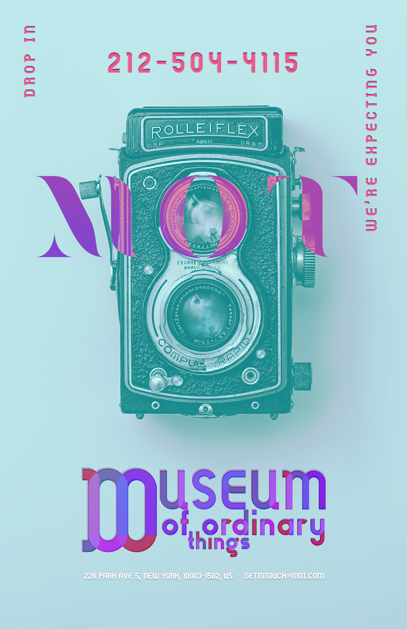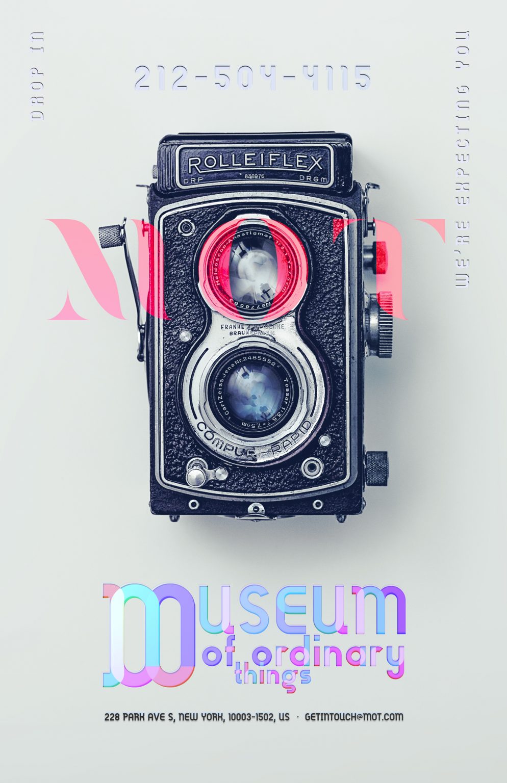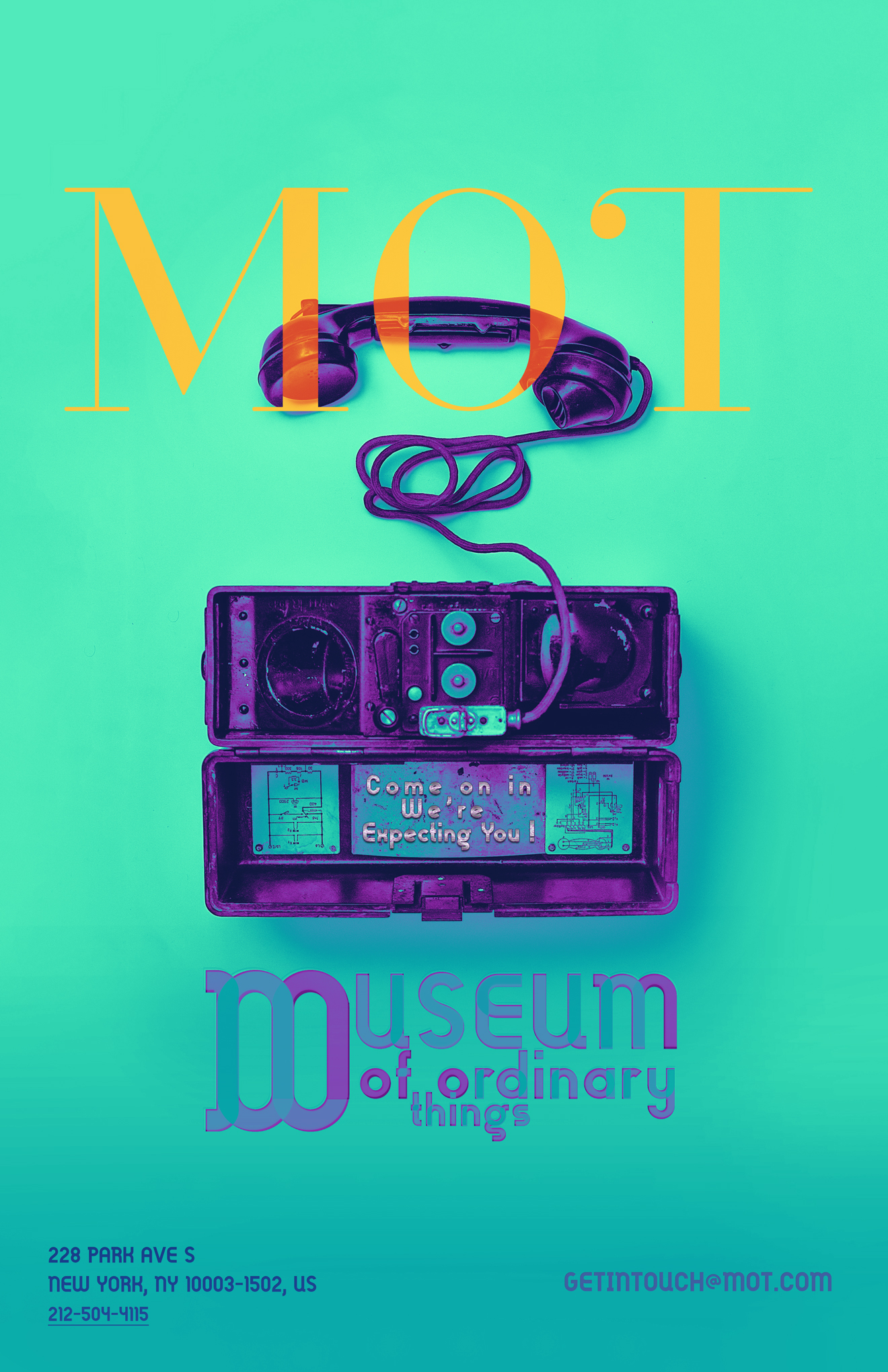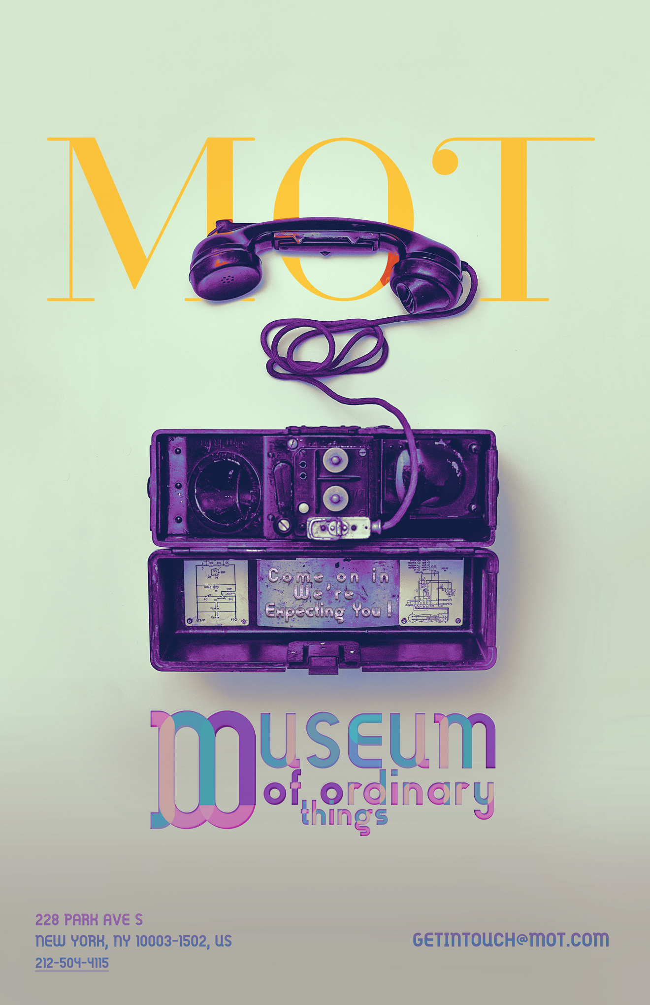 The Museum of Ordinary Things brings new light to old objects that might seem too simple in terms of their functionality, only being able to perform one task that in our modern days would seem incredibly easy. MOT considers these extraordinarily complex and sophisticated things as something worth reminiscing and briefly losing one's breath over. This poster series represent things that can be done by a modern smartphone, like a video camera, a writing machine, and a phone.